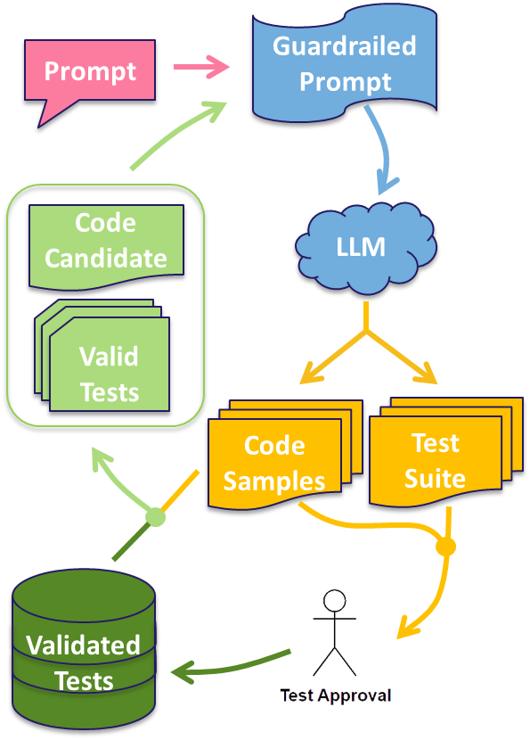 The tool guides the used towards a correct prompt by using automated test generation (or specification generation!) to find 'interesting' test cases and ask the user yes/no questions that will help to disambiguate the prompt and improve the generated code.